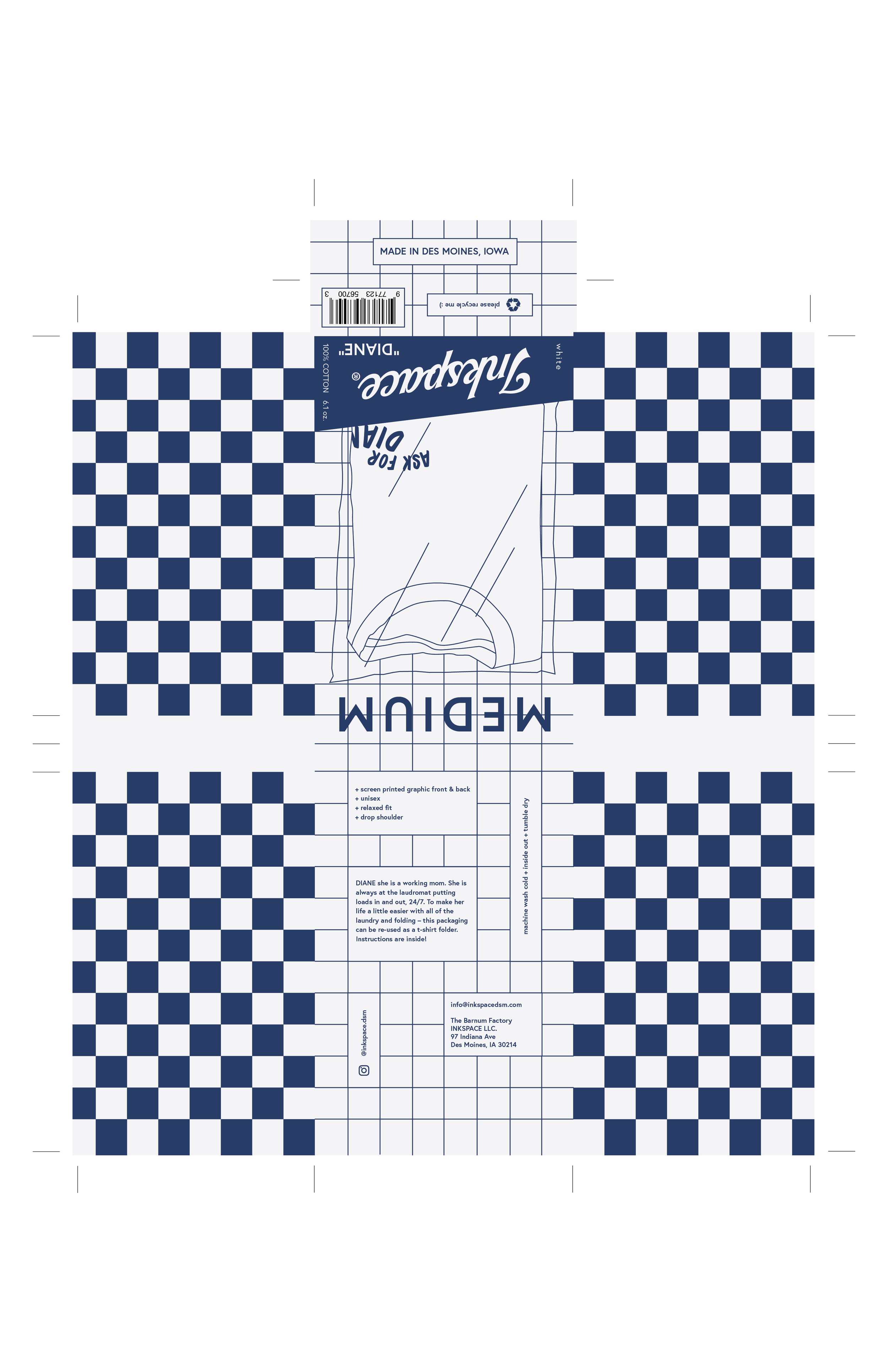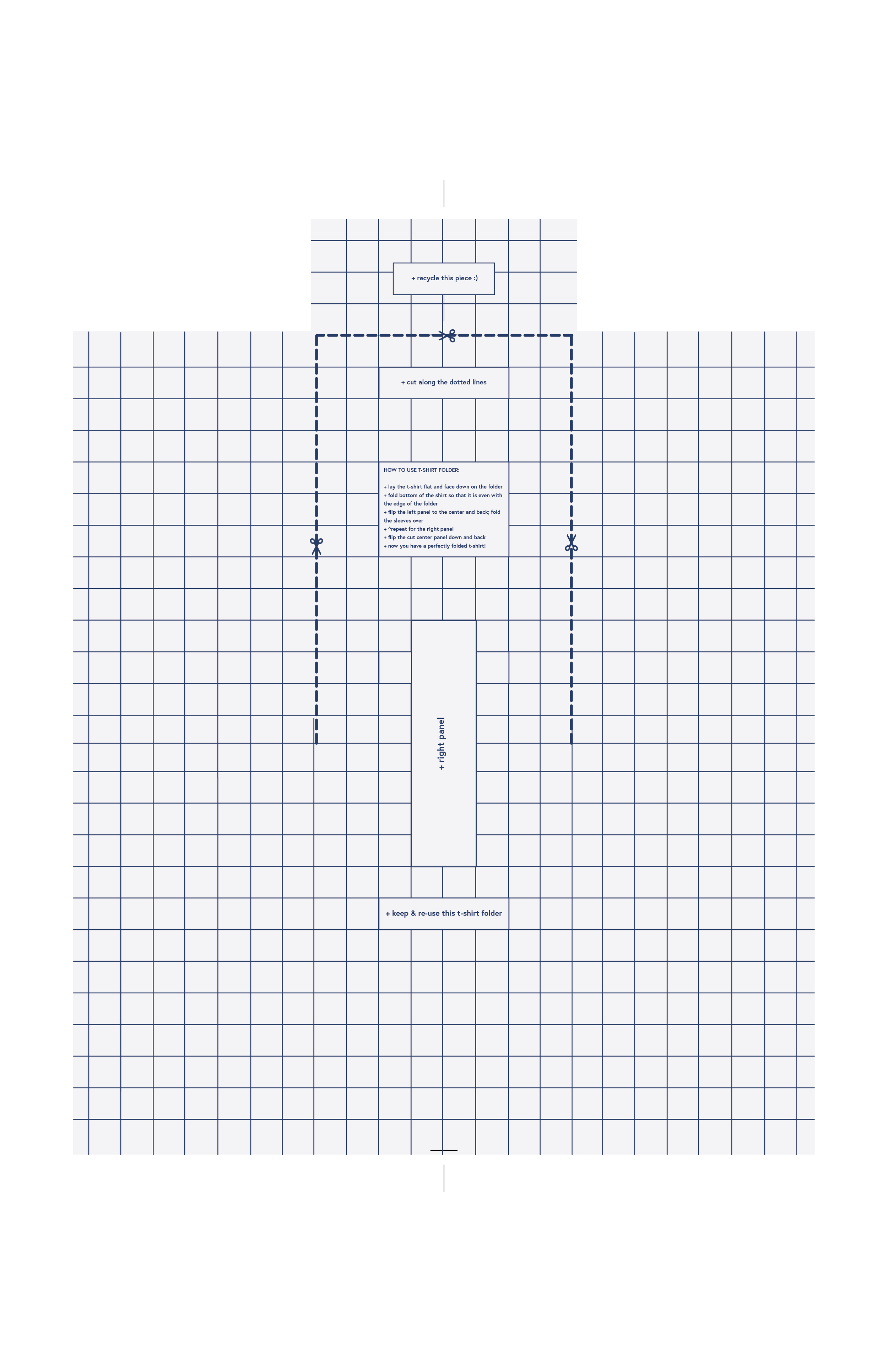 For experimental packaging, the shape and size of the die cut could vary. The only requirement was to be different and innovative. Repurposing the packaging as a t-shirt folder seemed like a smart option. Theoretically, the package could hold one t-shirt and function as a DIY t-shirt folder. The packaging also includes instructions on how to cut and use it as a t-shirt folder.